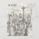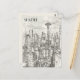 Diese Postkarte im handgezeichneten Stil zeigt einen Blick auf Seattles Skyline.