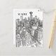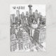 Diese Postkarte im handgezeichneten Stil zeigt einen Blick auf Seattles Skyline.