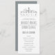 Un programme de mariage sur le thème de la skyline deco pour un mariage ayant lieu dans la belle ville de Seattle, Washington. Cet article présente une illustration stylisée de l'horizon unique de la ville avec son nom en dessous. Viennent ensuite les informations de votre jour de mariage dans un style ouvert et assorti.