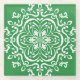 Dieses weiße Mandala sitzt auf grünem Hintergrund. Die Farben sind sehr entspannend und friedlich. Teil der Losonieth Mandala Kollektion.