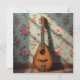 Hübsche Tapete mit Vintager Rose, die mit einem sechsstacheligen Dulcimer auf dem Boden liegt. Hübsche leere Karte für Musiker, die seltene Instrumente mögen.