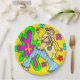 Sechziger-Blumen-Kind und Friedenszeichen-helle Pappteller