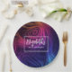 Papier Teller mit einem coolen Muster mit 60er-Durchgängen. Rainbow-farbene Kreise und Wirbel.
