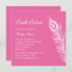 Une plume de paon clair et feutrée orne cette invitation de façon chic, nouvelle et moderne. Il est montré sur le papier de base; cependant, je recommande le poids et la texture du papier de lin.