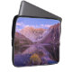 Eine ruhige Landschaft, die die majestätischen Berge der Sierra Nevada und ihre Reflexionen auf einem ruhigen Gewässer des Ellery-Sees am Tioga-Pass, Kalifornien, in der Dämmerung zeigt.