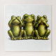 Three cute frogs representing “see no evil, hear no evil, speak no evil” in a playful and funny cartoon style with a positive message.