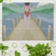 Ein Beispiel für eine Frau, die auf einem Damm läuft, der bereit ist, in den Rotoiti-See zu springen. Dies ist ein See in Nelson Seen National Park, South Island Neuseeland. In einem Retro-Pop-Stil gezeichnet hat dieses Design das Aussehen von gefaltetem und abgenutztem Papier.