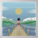 Ein Beispiel für eine Frau, die auf einem Damm läuft, der bereit ist, in den Rotoiti-See zu springen. Dies ist ein See in Nelson Seen National Park, South Island Neuseeland. In einem Retro-Pop-Stil gezeichnet hat dieses Design das Aussehen von gefaltetem und abgenutztem Papier.