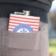 NewparkLane - moderner Entwurf, personalisierte Flasche, mit einem roten gestreiften Muster und einem Marineblauanker in einem blauen Kreisrahmen. Einfach, mit Ihrer Namens- und Lieblingsstadt besonders anzufertigen. Alle Textart, Farben, Größen kann geändert werden, um Ihren Bedarf zu passen.