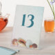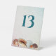 Living Sea Tischnummer Podestschild mit Muscheln. Muscheln am Strand machen einen hübschen Rahmen auf diesem stehenden Schild mit aquamariner blauer Zahlenvorlage. Dieses Zeichen ist 6x8 Zoll, mit anderen Größen Optionen.