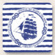 Blaues Seeemblem mit Segelschiff auf einem gestreiften Hintergrund | © und einem ® Bigstock® - alle Rechte vorbehalten.