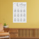 Herzlich willkommen bei Ihren Hochzeitsgästen mit dieser klassischen Sitzkarte mit moderner Kalligraphie. Dieses Hochzeitsposter bietet Platz für bis zu 120 Gäste. Machen Sie Platz für mehr (oder weniger) Gäste, indem Sie auf den "Anpassen"-Button klicken und die Schriftart-Größe verkleinern oder erhöhen. Zusätzliche Tabellen können ebenfalls gelöscht werden. Neben der Platzierung jedes Gastes, personalisieren Sie dieses Schild mit den Namen der Braut und Bräutigam und dem Hochzeitstag.