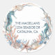 Die Aufkleber zum Thema "Unter dem Meer" verfügen über einen Aquarellkranz mit Korallen, Seepferd, Seestern, Muscheln und Algen in den Farben Blau und Beige der Küste.