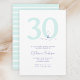 Eine elegante, moderne Einladung zum 30. Geburtstag für Frauen mit einem nautischen Thema, mit einem Farbdruck von Ozeanwellen, einem kleinen Boot und Möwen, die darüber fliegen, "Sailing into 30", moderner Kalligraphie, sowie Streifen auf der Rückseite. Eine schöne Wahl für eine Beach 30 Geburtstagsparty, eine Küsten-, See-, Wasser-, Boot oder Yacht Geburtstagsparty für eine Frau, die dreißig Jahre alt wird.
