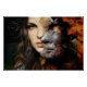 Weibliches Porträt mit einem Gesicht in fragmentierten Schichten, das vielfältige Texturen und Farben offenbart und multiple Facetten von Identität und Emotion suggeriert.