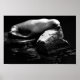 Ein Schwarz-Weiß-Foto eines California Sea Lion schläft auf einem großen Felsen.