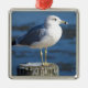 Digitalisiertes Bild einer Ring-berechneten Möve hockte auf einer Anhäufung. Blaues Wasser bildet den Hintergrund.