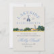 Kick zurück auf den See mit diesem Küstensee Bachelorette Weekend Blue Nautical Itinerary Invitation. Ein einfaches, klassisches Design mit moderner Typografie, einer handgezeichneten landschaftlichen Aquarellskizze und Akzenten am See. Die Wochenendreise ist ideal für entspannende Bachelorette Wochenenden am See.