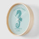 Ein aquamarines Seepferd Strandhaus Mauer Uhr für Sie gewartet, um Ihren Familiennamen und das Jahr etabliert hinzuzufügen. Wenn man die Küstenstraße Liebe, dann ist das die Uhr für Sie