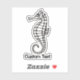 Stilisierte Schwarz-Weiß-Ikone eines Seepferds. Eigener Text.