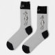 Stilisierte Schwarz-Weiß-Ikone eines Seepferds. Benutzerdefinierte Hintergrundfarbe. Benutzerdefinierte Farbe des oberen Streifens. Benutzerdefinierter Text auf jeder Socke.