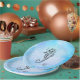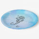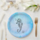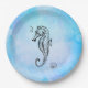 Seepferd und Seashell auf blauer Wasserfarbe Pappteller