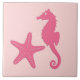 Digitale Wiedergabe eines Seepferds und Seesterns in tiefkorallenrosa auf einem hellkorallenrosa Hintergrund
