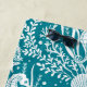 Dieses personalisierte Küstentücher weist ein Damast-Muster auf, mit Seepferden, Algen, Korallen und Muscheln in aquamarin-weißer Farbe.