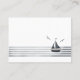 Begleiten Sie Ihre Gäste durch die Festlichkeiten mit diesen bezaubernden Visitenkarten, die Hochzeitskarten in klassischem nautisches Design in sanften bläulich-grauen Farbtönen bieten. Die Vorderseite zeigt eine kurze Zeitleiste von wichtigen Ereignissen, während die Rückseite eine Abbildung eines Segelbootes mit nautischen Streifen in bläulichem Grau zeigt.