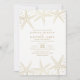 Seestarfish-eleganter Spaß-Strand-themenorientierte Hochzeits-Einladungen. Kennzeichnen Sie schöne goldene Effekt Starfish auf einem eleganten weißen Hintergrund. Sie können die Hintergrundfarbe zu jeder möglicher gewünschten Farbe leicht ändern. Groß für See-, Küsten, Ozean und andere Hochzeiten. Diese Hochzeitseinladung wird durch http://superdazzle.com entworfen