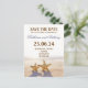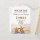 Romantische SAVE THE DATE Postkarten mit zwei niedlichen Seestern am Strand in der Nähe des Meeres oder des Ozeans.