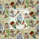 Amerikanische traditionelle, Seetätowierungen gegen ein Feld der Sterne und Punkte. Diese Spaßillustration ist hinzufügen jeder möglicher Gewebesammlung, aber sind ein Muss haben für inspirierte nähende nautischprojekte ein großes.