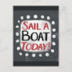 "Sail A Boat Today" ist ein niedliches Textdesign in Grau mit schwarzem und rotem Text. Er sitzt auf einer weißen Akzent-Form und niedliche weiße Polka-Punkte, die ihn umgeben.