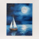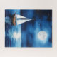 Puzzle in einer Illustration eines Segelbootes, das friedlich auf einem ruhigen, mondbeleuchteten Meer treibt, umgeben von einem Sternenhimmel. Der Vollmond reflektiert das Wasser sanft und schafft eine ruhige und ruhige Szene.