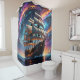 Ein großes Schiff unter Vollsegel gleitet durch ein ruhiges Meer unter einem farbenprächtigen, magischen Himmel aus Galaxien, Planeten und Sternen. Schönes, traumhaftes Bild.