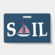 Sail Text Design Illustration mit Segelbootdekoration auf dunkelblauem Hintergrund. Es ist möglich, die Hintergrundfarbe zu ändern und das Design mit Ihrer Wahl zu ergänzen.