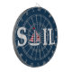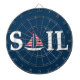 Sail Text Design Illustration mit Segelbootdekoration auf dunkelblauem Hintergrund. Es ist möglich, die Hintergrundfarbe zu ändern und das Design mit Ihrer Wahl zu ergänzen.