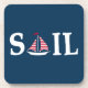 Sail Text Design Illustration mit Segelbootdekoration auf dunkelblauem Hintergrund. Es ist möglich, die Hintergrundfarbe zu ändern und das Design mit Ihrer Wahl zu ergänzen.