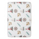 Segeltuch illustriert große Oberfläche Muster Design eines Segelbootes, Leuchtturm, Anker, Schiff's Wheel und AHOY! Typografie in bunten Details auf einem weißen Hintergrund.