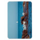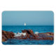 Ein Foto eines Segelbootes am Horizont, und Wellen, die in die Felsformation in der Nähe des Ufers einbrechen. Image Copyright ©2018 Kimberly J Tilley.