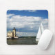 Ein Leuchtturm des Hudson River NY, der sich dem Segelboot unter dem wunderschönen Himmel des Hudson Valley nähert.