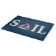 Sail Text Design Illustration mit Segelbootdekoration auf dunkelblauem Hintergrund. Es ist möglich, die Hintergrundfarbe zu ändern und das Design mit Ihrer Wahl zu ergänzen.