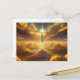 Goldenes Kreuz zwischen hellen goldenen Wolken mit Typografie-Design.