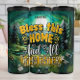 Diese einladende Grafik zeigt den herzlichen Segen "Segen diese ZUHAUSE und alle WHO-ENTER" in prominenter Gelb-Weiß-Typografie. Die spirituelle Botschaft ist das Set gegen eine ruhige, stilisierte Landschaft mit grünen Bergen, hohen immergrünen Bäumen und einem ruhigen See. Ein strahlender Mond beleuchtet die Szene mit zarten Wildblumen, die im Vordergrund verstreut sind und ein warmes, einladendes Design schaffen.
