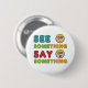 Sehen Sie etwas Say Etwas Design zeigt die Sicherheitsbotschaft in klarer Schrift mit zwei Gesichtern, die Augen zeigen, die etwas falsch sehen, und dann öffnet sich ein Mund, um etwas darüber zu sagen.
