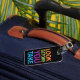 Farbenfrohe "Look Before You Take" personalisierbare Gepäckmarke.