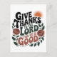 Feiern Sie Dankbarkeit und Glauben mit diesem wunderschön gestalteten generativen Design mit dem aufbauenden Bibelvers „Dankt dem Herrn, denn er ist gut.“ Mit seinen reichen erdigen Tönen, floralen Akzenten und einem warmen Sonnenaufgangsmotiv strahlt dieses Design Frieden und Dankbarkeit aus.