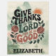 Feiern Sie Dankbarkeit und Glauben mit diesem wunderschön gestalteten generativen Design mit dem aufbauenden Bibelvers "Dankt dem Herrn, denn er ist gut". Mit seinen reichen erdigen Tönen, floralen Akzenten und einem warmen Sonnenaufgangsmotiv strahlt dieses Design Frieden und Dankbarkeit aus.