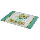 Ein schönes Aquamarines Glasbrett, das mit einem Glas Glasflammen und Sonnenblumen gestaltet ist
