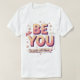 Fette Briefe buchstabieren "Be You" mit der Meldung "Die Welt wird sich anpassen" unter einem braunen Hintergrund. Um den Text herum sind Sterne, eine kleine Wolke und ein Flugzeug.